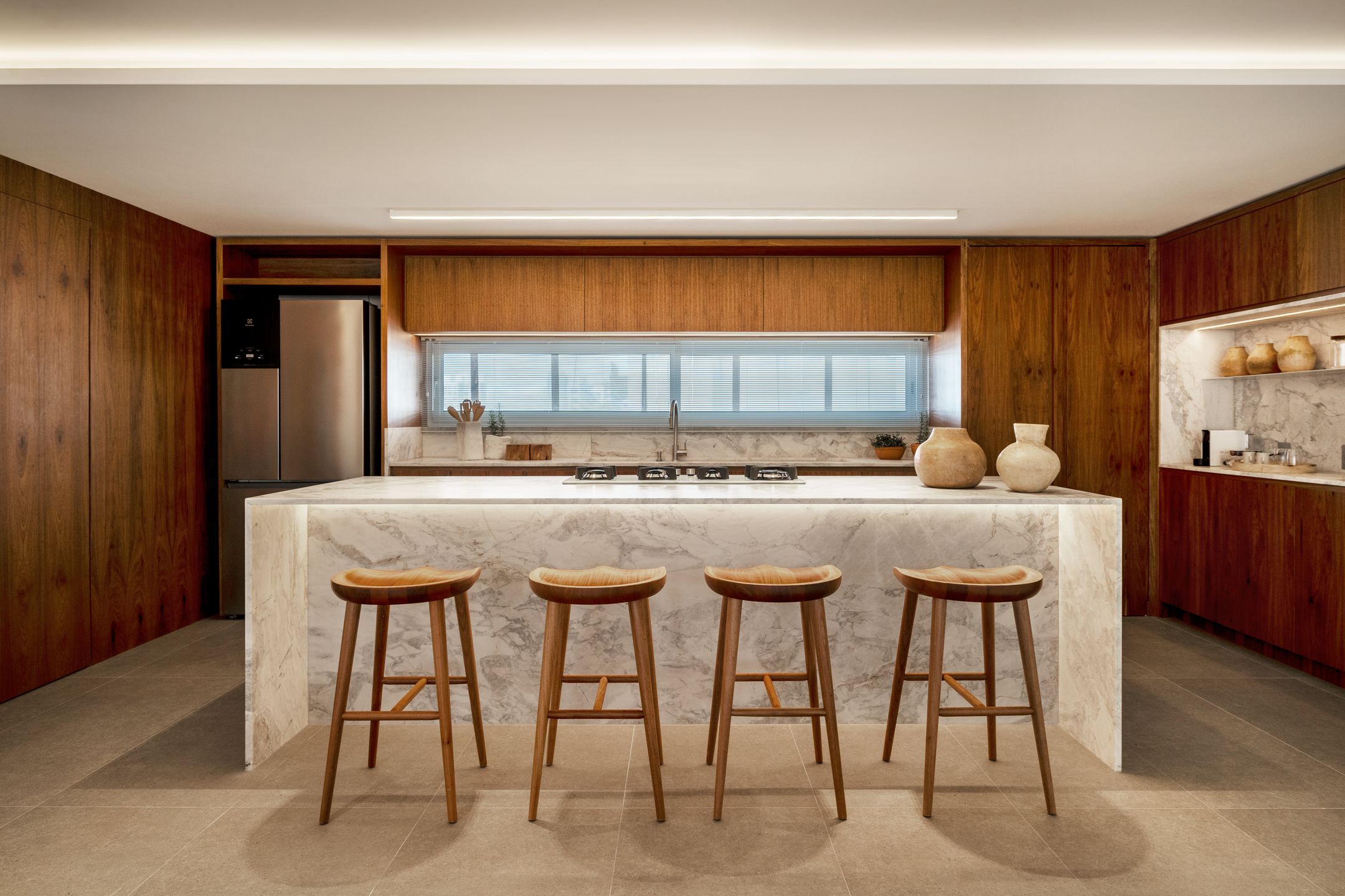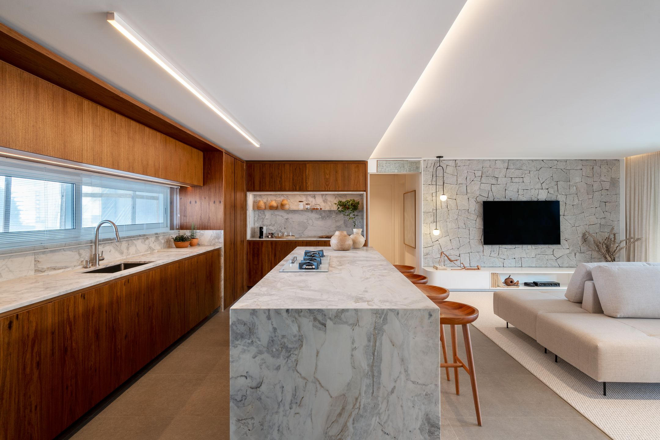 . Ampla sacada gourmet, com peitoril de vidro e integração com o estar e jantar