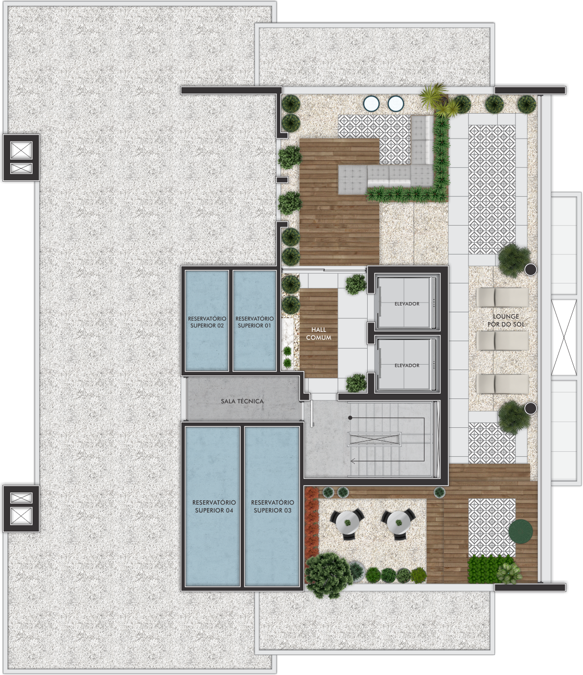 🌇 Rooftop com lounge: Um espaço único para admirar o pôr do sol e criar memórias.