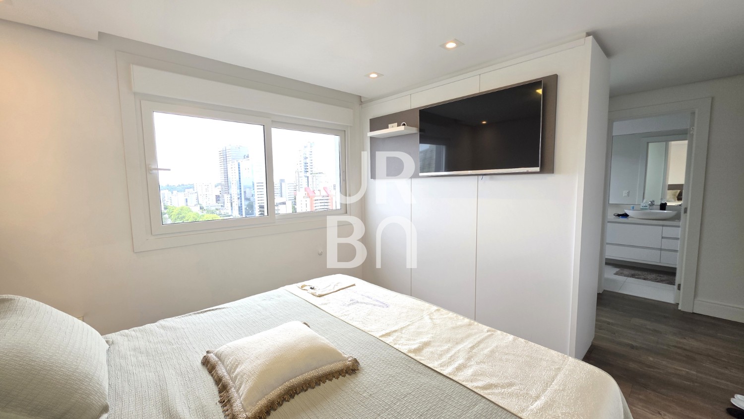 Descrição › Este apartamento (Código URB1809), é entregue semimobiliado. O cenário ideal para quem valoriza praticidade na estrutura fixa, mas faz questão de imprimir o próprio estilo na mobília e decoração de cada ambiente.